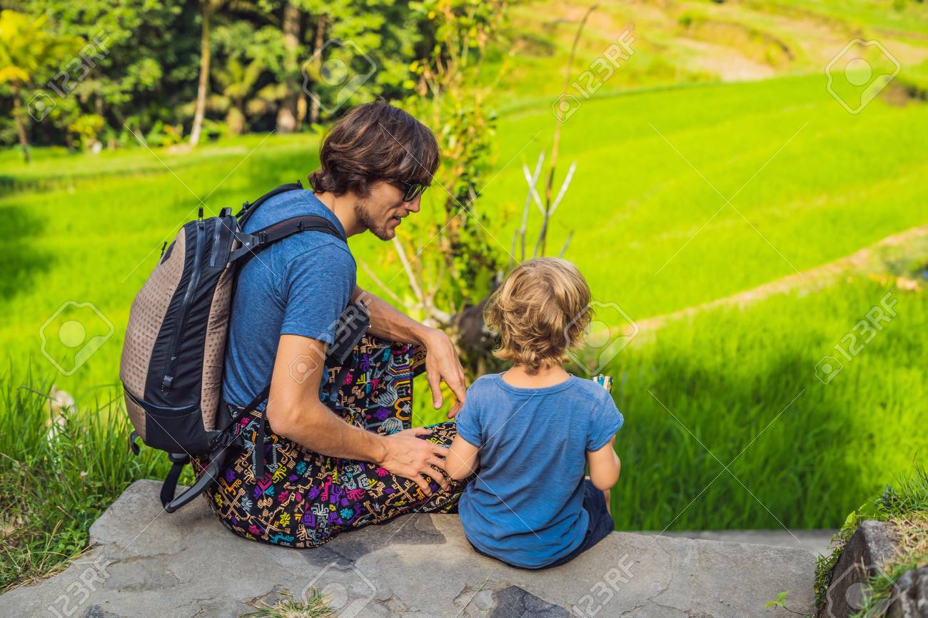 Boy Traveler On Beautiful Jatiluwih Rice Terraces Against The